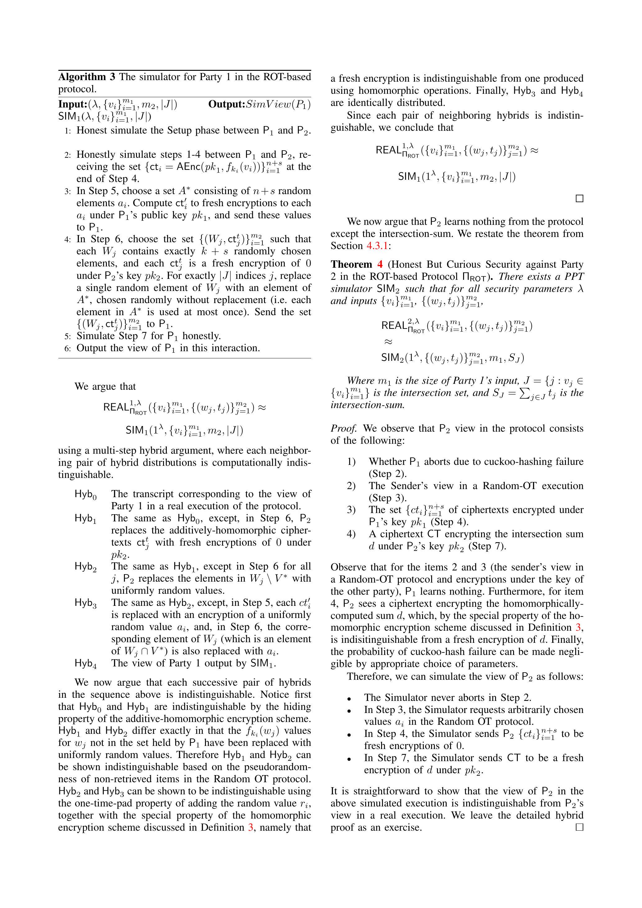 在这个部分,我们证明了基于随机 OT 的私有交集求和协议
